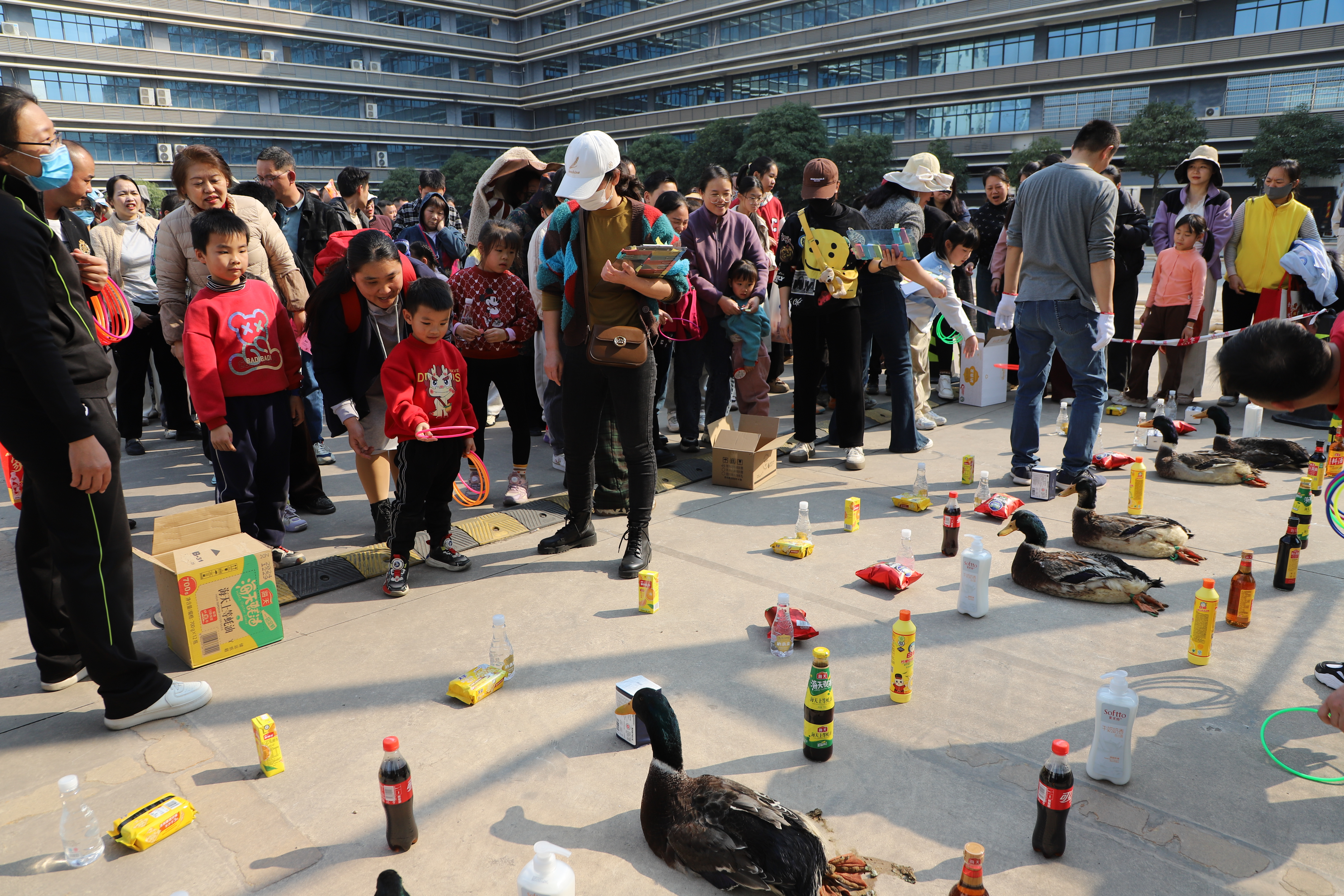 套圈游戲區(qū)內(nèi),參與者們紛紛展示著自己的技巧,試圖將手中的圓圈準(zhǔn)確地套中目標(biāo)。太好了!我套中鴨子!”一位參與者瞄準(zhǔn)目標(biāo),輕輕一拋,圓圈穩(wěn)穩(wěn)當(dāng)當(dāng)?shù)芈湓诹?/span>鴨頭上,引來周圍人的一片喝彩。
