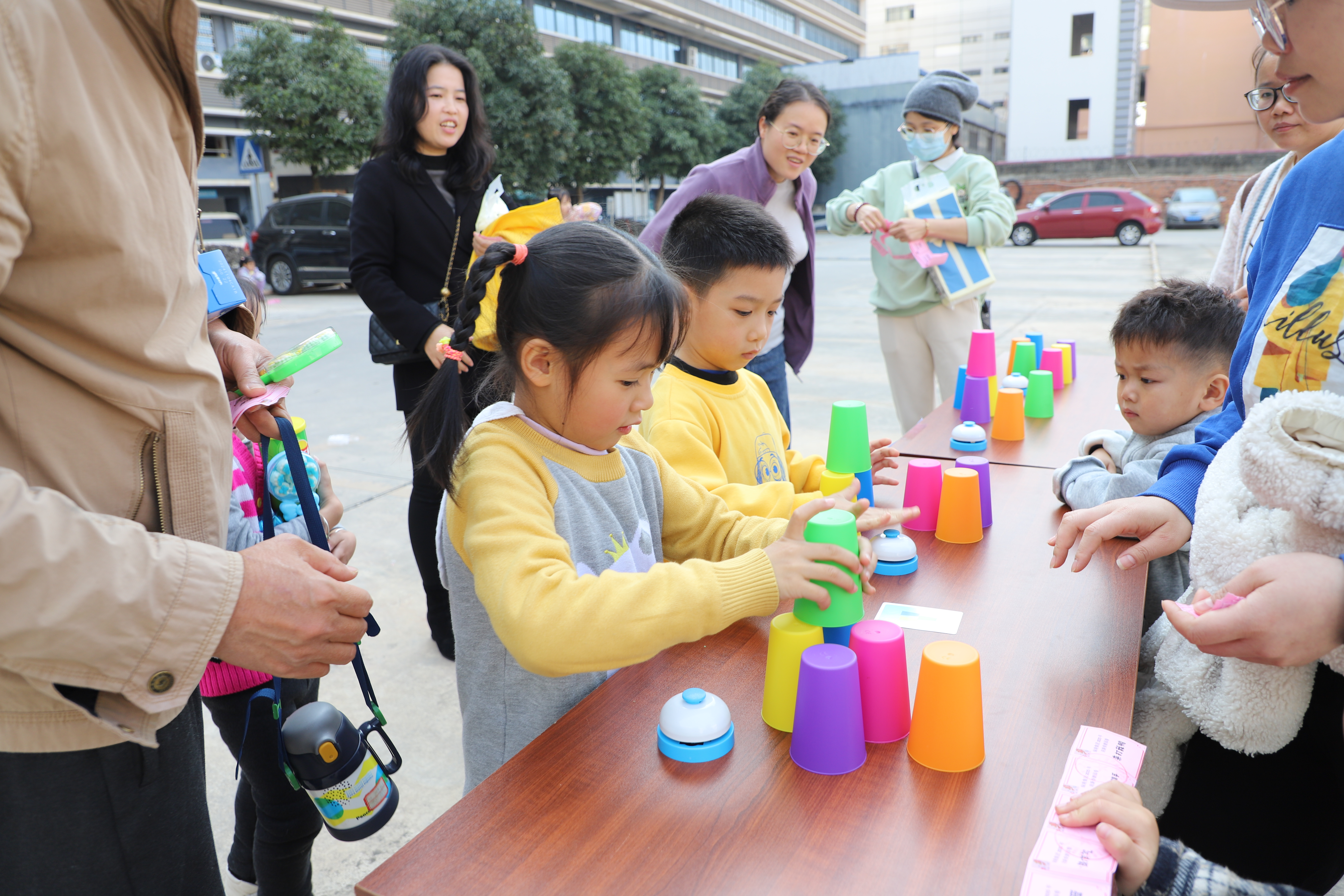 對戰(zhàn)疊疊樂則激發(fā)了大家的勝負(fù)欲。大家小心翼翼地調(diào)整著杯子的位置,最先按圖案疊好杯子的獲勝。“耶!我贏了!”最先獲勝的小伙伴興奮地歡呼著。